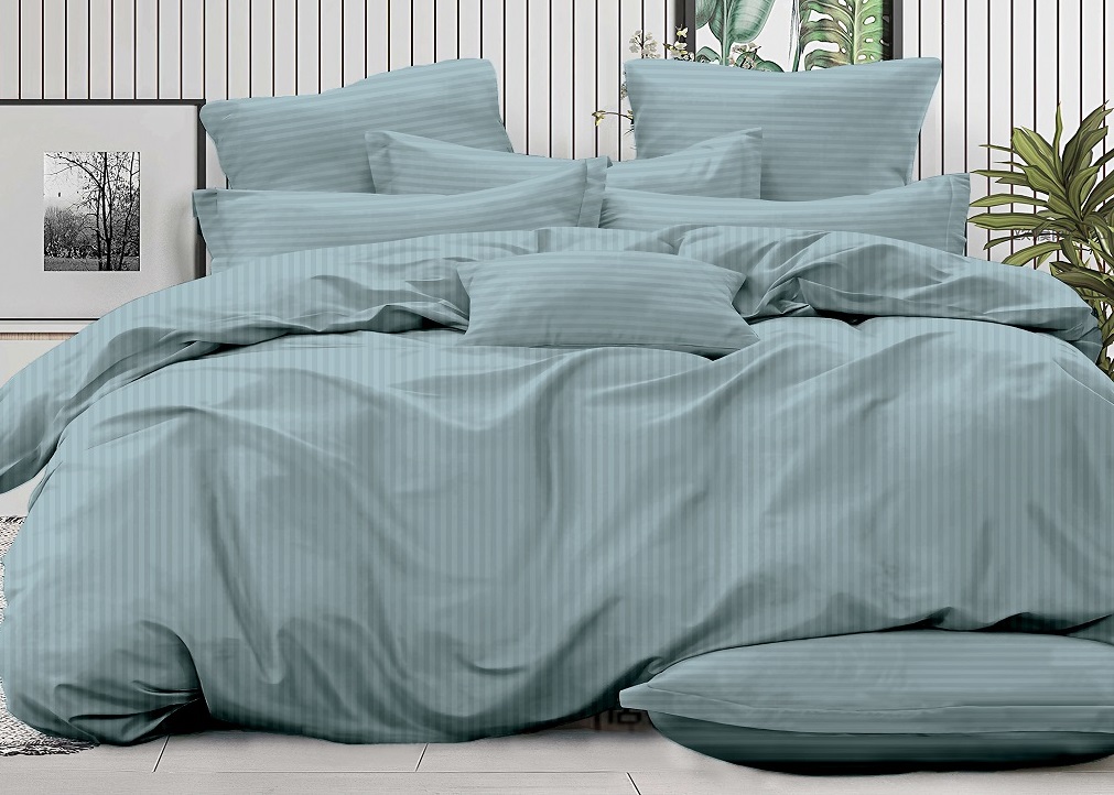 Двуспальное постельное белье из страйп-сатина-жаккарда «14-4504 (полоска 1см)»