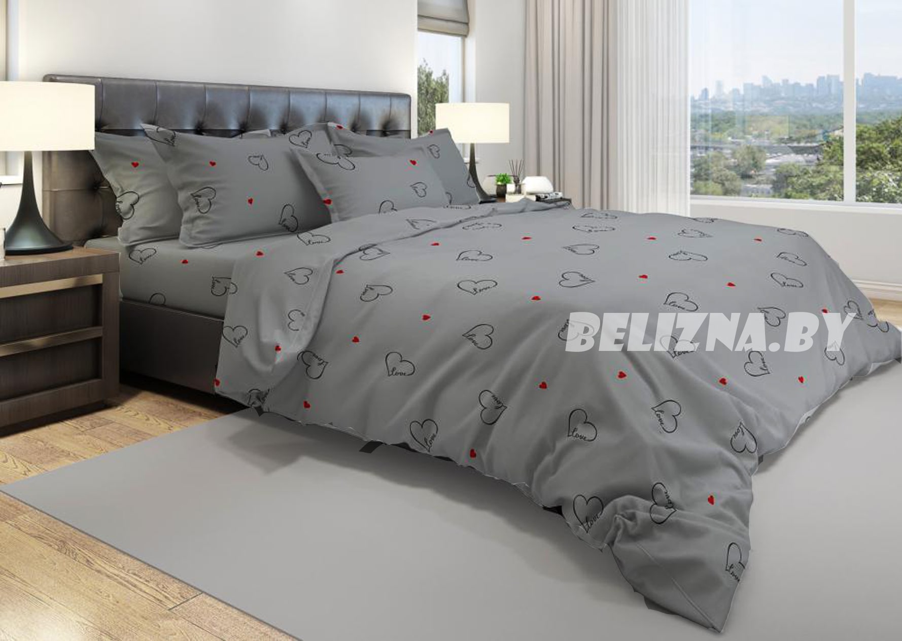 Полуторное постельное белье из бязи эконом «My love (серый)»
